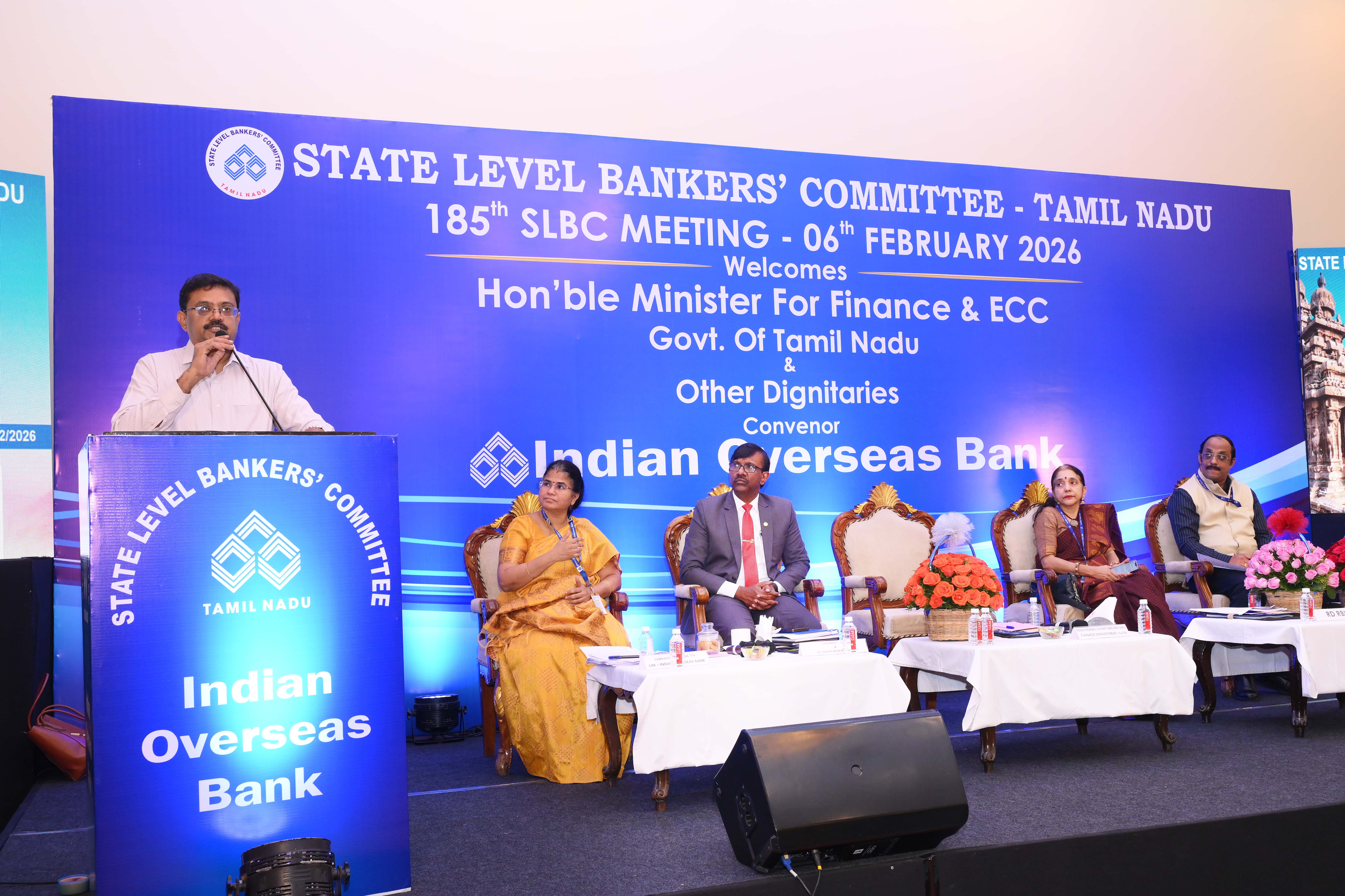 The 185th State Level Bankers’ Committee (SLBC) Meeting of Tamil Nadu was held on 06.02.2026 at Chennai under the Chairmanship of Thiru T. Udhayachandran, IAS, Additional Chief Secretary to Government, GoTN. The meeting was convened by Indian Overseas Bank, the Convenor Bank for SLBC Tamil Nadu.