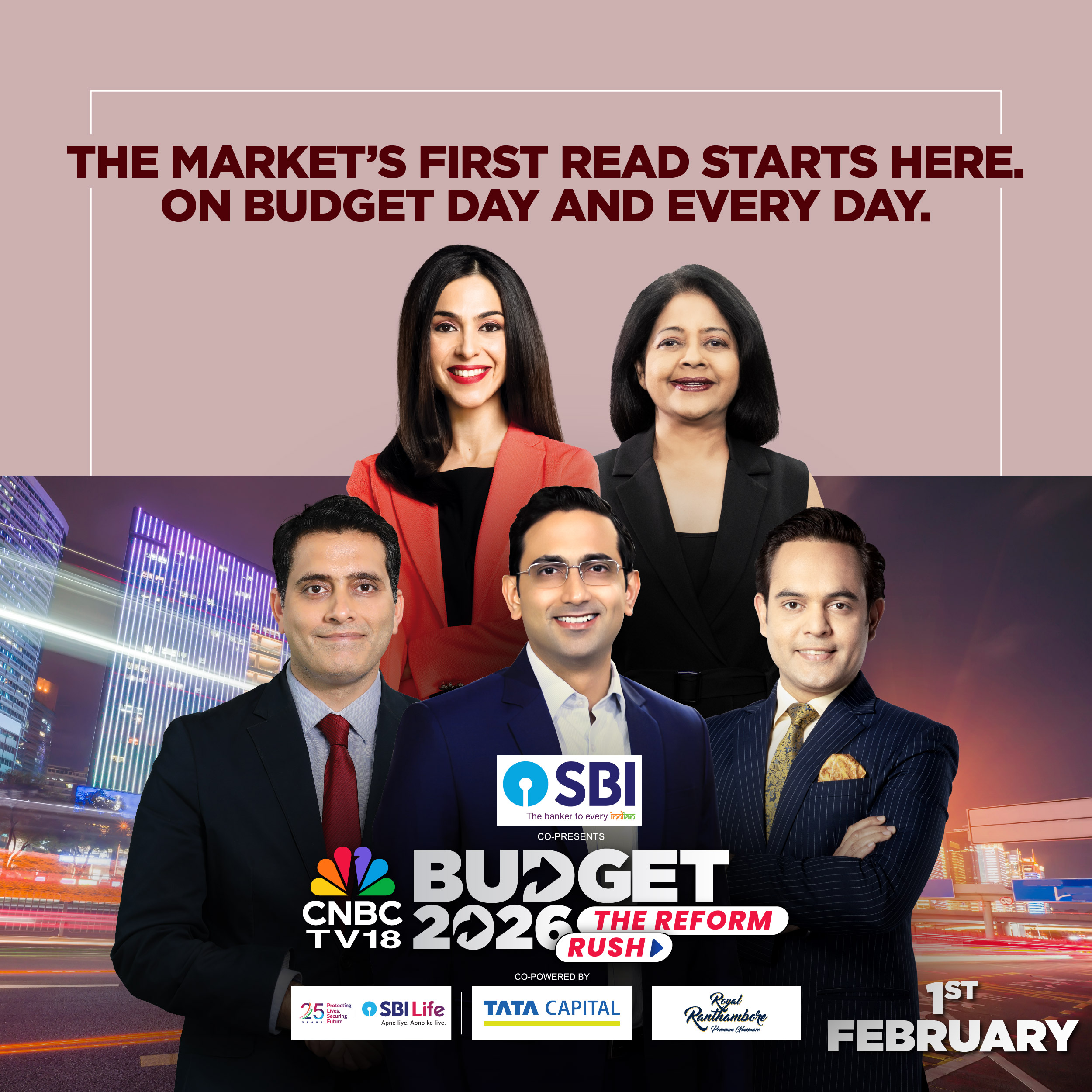 CNBC-TV18 Union Budget 2026 – The Reform Rush is co-presented by SBI and Co-powered by SBI Life, TATA Capital, Royal Ranthambore and IDBI Bank.