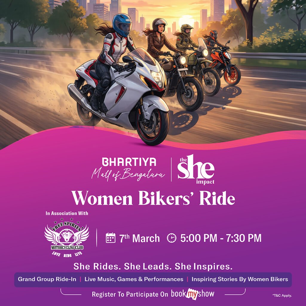 Bengaluru, Feb 17: Bhartiya Mall of Bengaluru, in association with Free Spirits Motorcycling Club (FSMC), is set to host the Women Bikers’ Ride on 7th March 2026 — a powerful celebration of courage, independence, and women who challenge conventions. The ride forms part of the 3rd edition of the mall’s signature Women’s Day campaign, TheSheImpact, which champions women-led stories, businesses, and communities.